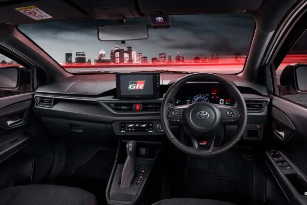 Berpindah ke interior Toyota New Agya, ada beberapa upgrade yang diberikan. Terdapat desain dashboard terbaru dengan Combination Meter with Red Accent yang membuat Anda bisa lebih mudah melihat penunjuk indikator mobil. Khusus untuk tipe TRD terdapat New Touch Screen Head Unit dan New Engine Start/Stop Button yang menambah jiwa sporty di dalam interior Toyota New Agya.